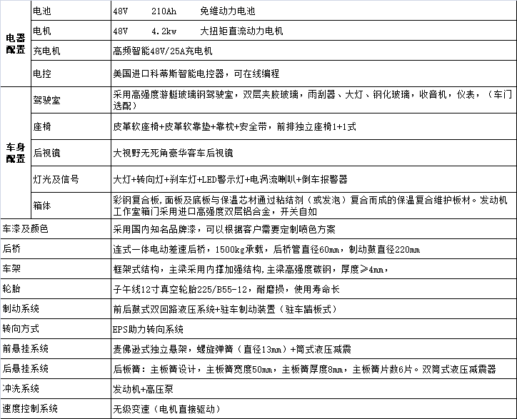 6、底盤采用微型汽車底盤結(jié)構(gòu),前、后輪液壓制動(dòng),具有良好的穩(wěn)定性和安全性;