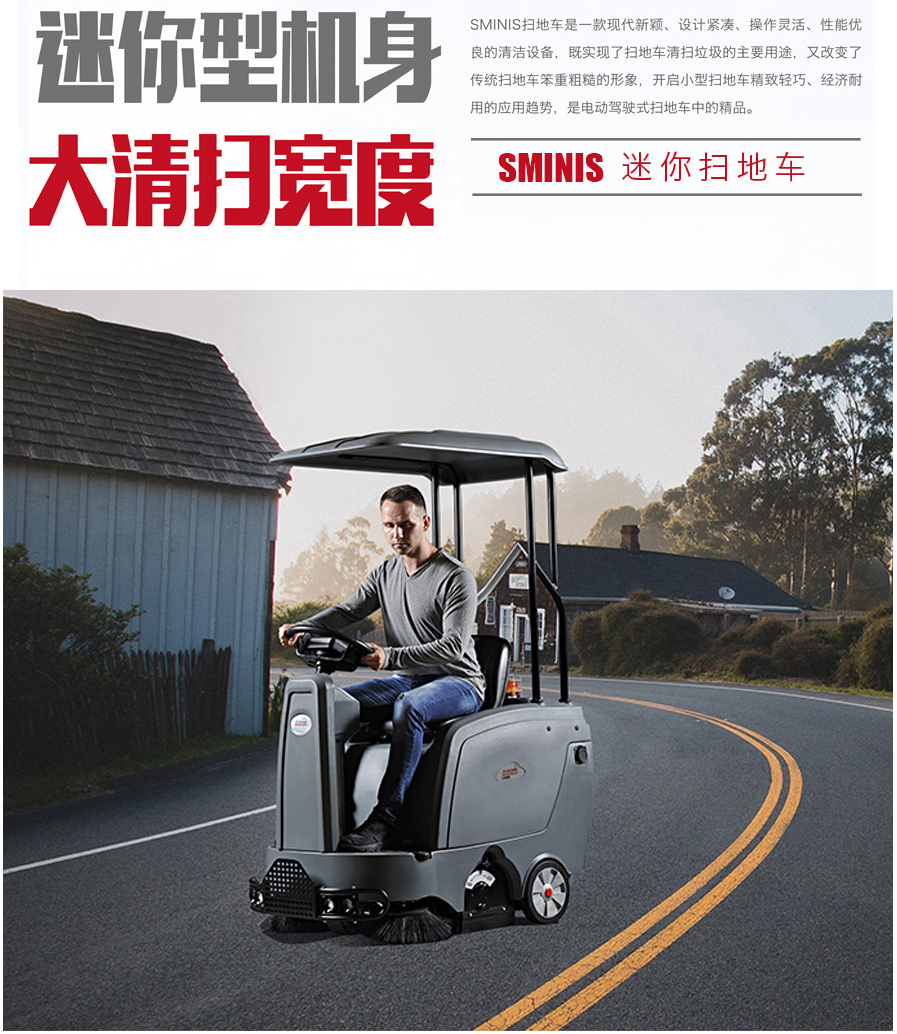 S-MINIS掃地車是一款現代新穎、設計緊湊、操作靈活、性能優良的清潔設備,即實現了掃地車清掃垃圾的主要用途,又改變了傳統笨重粗糙的形象,開啟了小型掃地車精致輕巧、經久耐用的應用趨勢,是電動駕駛式掃地車中的精品。