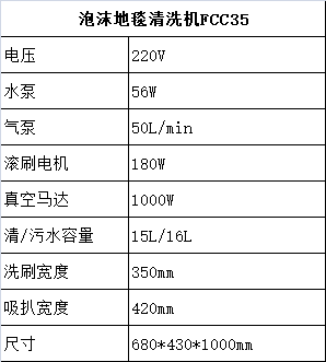 FCC35泡沫地毯清洗機,制泡、滾刷、吸干三合一??焖俑稍锖鸵涣鞯那鍧嵭阅埽_保地毯可立即投入使用。配合C-4地毯高壓抽洗機做徹底清洗,能滿足持續地毯維護的需求,并持久提供美觀清潔的地毯。