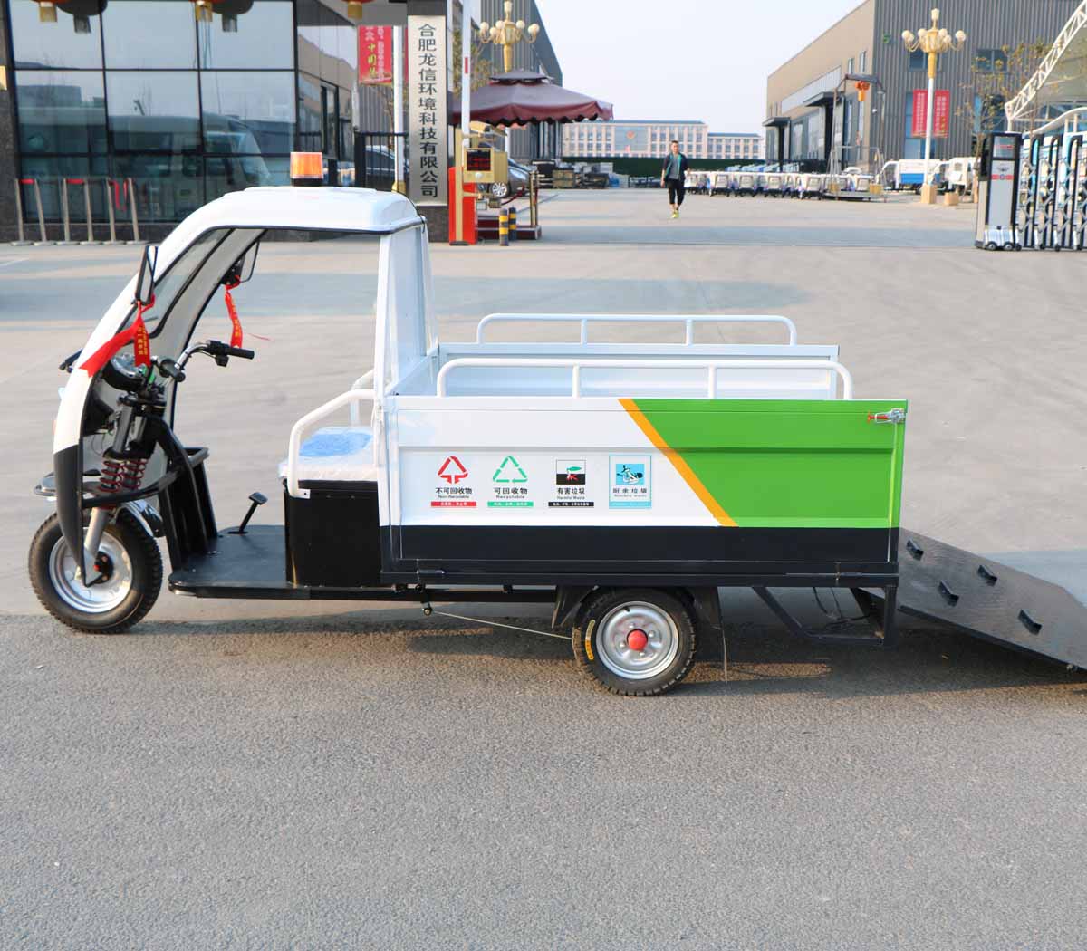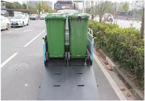 3、適用于短途駁運垃圾桶,可裝載4個240L標準垃圾桶;裝卸方便,集垃圾收集、存儲、清運于一體,有效提高作業效率;